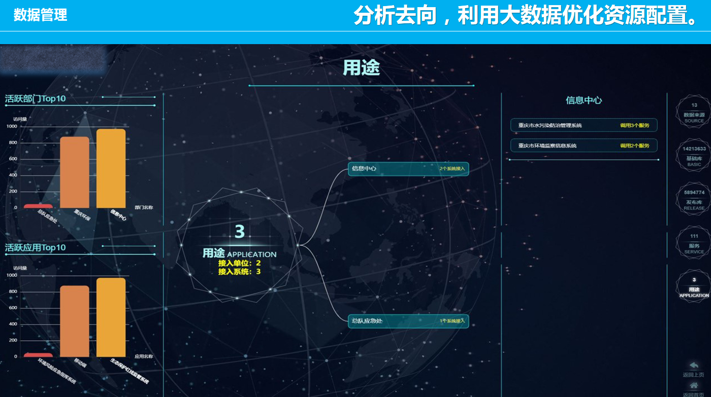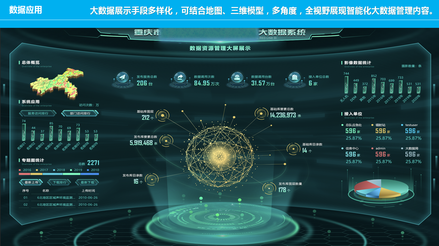 重慶數(shù)字城市科技有限公司開發(fā)研制的“生態(tài)環(huán)境大數(shù)據(jù)智能化平臺”包含了數(shù)據(jù)匯集、數(shù)據(jù)管理、數(shù)據(jù)服務(wù)發(fā)布、數(shù)據(jù)共享、數(shù)據(jù)應(yīng)用、數(shù)據(jù)展示幾個層級應(yīng)用,每個層級包含公司自行研發(fā)的業(yè)務(wù)邏輯模塊和算法模塊,且每個層級都擁有相應(yīng)的大數(shù)據(jù)展示頁面,能夠智能的進行數(shù)據(jù)的抽取、清洗、校驗,并適應(yīng)多平臺終端應(yīng)用,是一套專門服務(wù)于生態(tài)環(huán)境領(lǐng)域多源、多種類數(shù)據(jù)匯集、管理、發(fā)布、共享和展示的一體化智慧環(huán)保解決方案。
