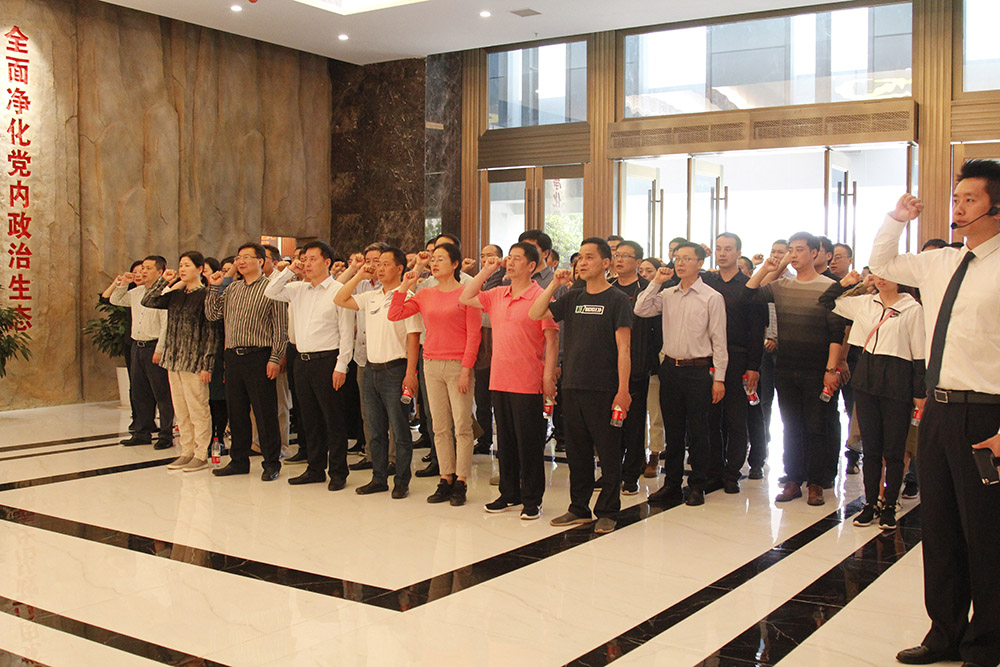 堅(jiān)定信念,牢記宗旨。“我志愿加入中國共產(chǎn)黨,擁護(hù)黨的綱領(lǐng),……”在集團(tuán)黨委書記、董事長李仕川的帶領(lǐng)下,一聲聲、一句句擲地有聲、鏗鏘有力的入黨誓言響徹在序廳中,全體人員舉起右拳,在黨旗下接受心靈的凈化和洗禮,重溫入黨時(shí)的理想和誓言。